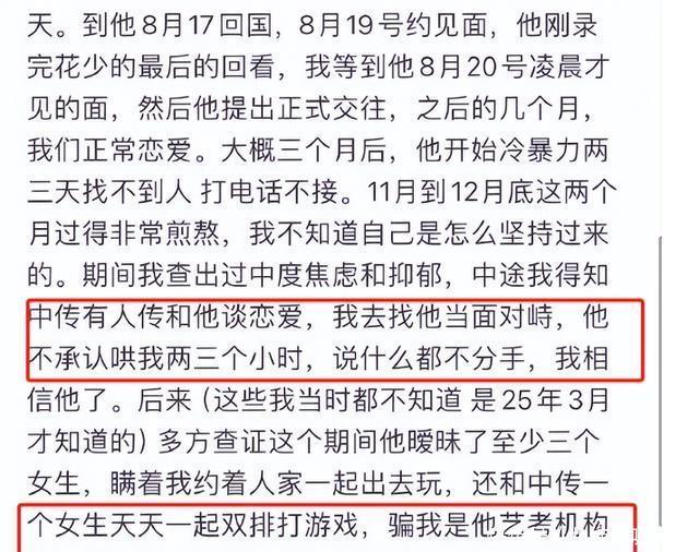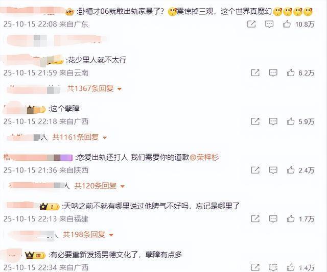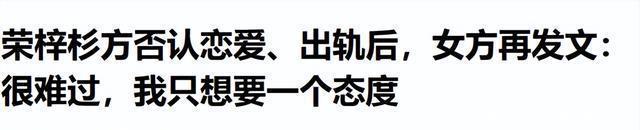 结语:正所谓,网络不是法外之地,现实也不是法外开恩之所,无论双方谁在撒谎,当结果浮出水面后,肯定有一方会付出惨痛的代价,希望内娱的明星能够警醒,管住下半身,不要再走上李某峰、吴某凡的老路。 大家对于这件事有什么不同看法,请在评论区留言。 深圳新闻网——2025年10月16日——荣梓杉方否认恋爱、出轨后,女方再发文:很难过,我只想要一个态度