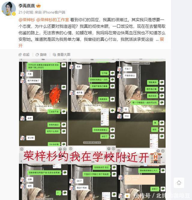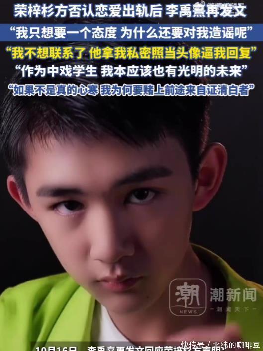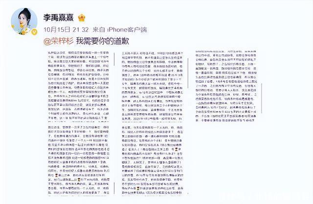 10月15日,一位名叫李禹熹的网友,在社交平台上发文质控荣梓杉。 并要求荣梓杉,面向全网对自己公开道歉。 原因则是,和荣梓杉交往期间,对方不仅脚踏多只船,甚至对自己大打出手。