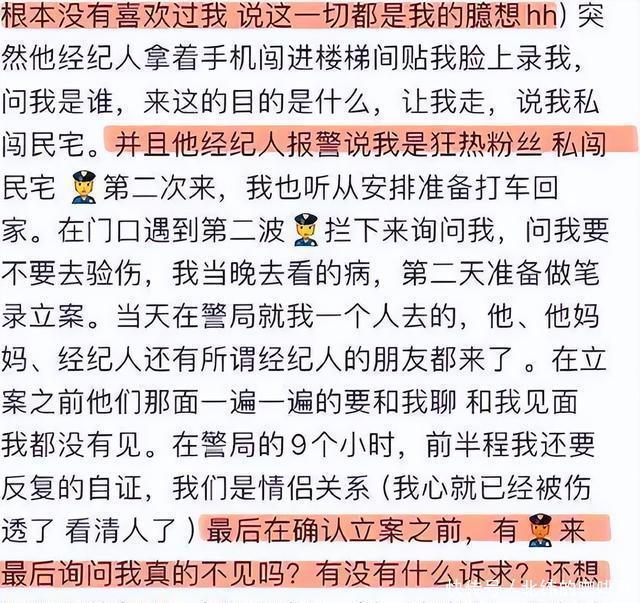 从这之后,虽说还保持恋爱关系,可也只限于在网上聊天。 因为荣梓杉跟随经纪人进组拍戏,长达半年都没有没有时间与她见面。 直到10月3日,剧组杀青荣梓杉才从外地赶回来。 可让李禹熹做梦都想不到的是,刚回来她就会遭到枕边人的殴打。