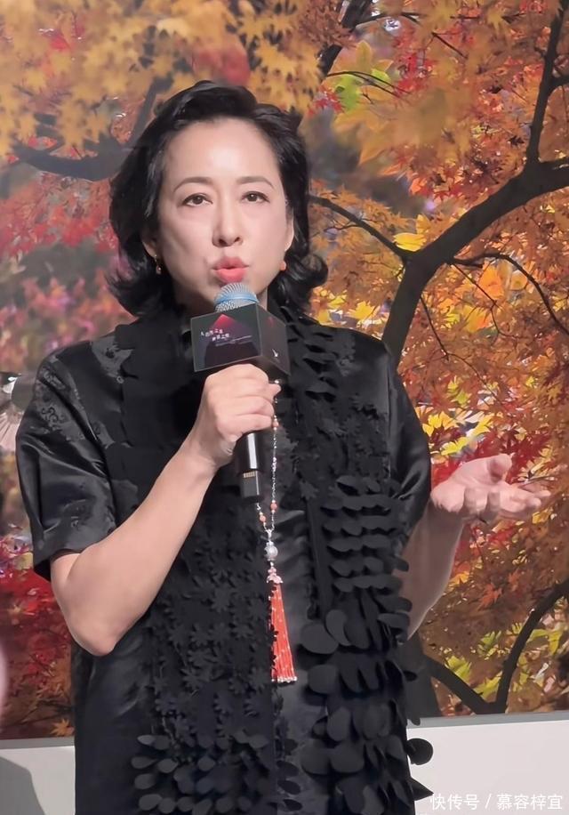 当天她的穿搭格外得体,黑色国风连衣裙勾勒出优雅线条,胸前的红色流苏项链与脚上的红鞋形成巧妙呼应,没化浓妆的脸上,眼角细纹反而让笑容多了几分真实感。 有观众凑近观察,发现她头发里连一根白发都没有,举手投足间的从容气度,比年轻时更添了几分岁月沉淀的韵味。