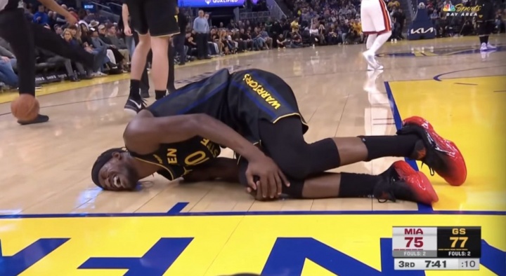第三节还剩𰱵分多钟时,勇士进攻回合,吉米·巴特勒接应波杰姆斯基传球,在对抗中倒地不起,捂着右膝,表情痛苦,随后被队友希尔德和库明加架着回更衣室。